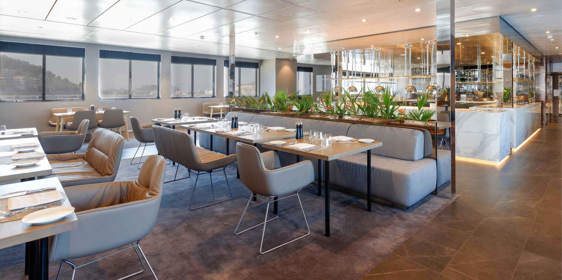 Whichever cabin grade you choose, a comfortable getaway is assured. Every suite and stateroom benefits from an en-suite bathroom, luxury ESPA toiletries, Wi-Fi, a TV and infotainment system, and a king or two twin-sized beds draped in luscious linens.