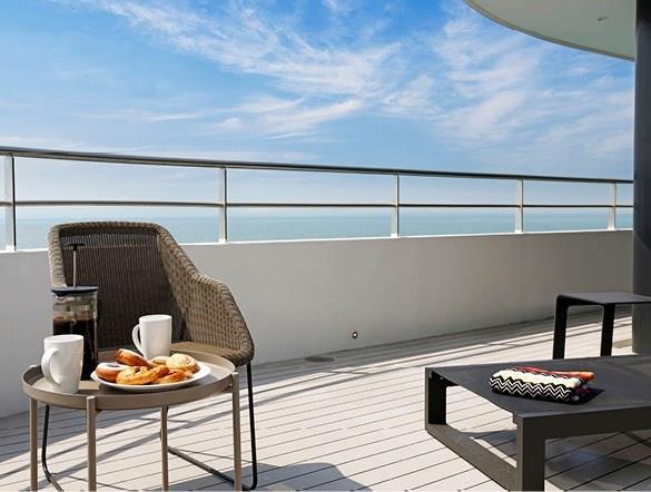 Positioned on the Pool Deck and beautifully designed with luxury inclusions, the Deluxe Balcony Suites have a stylish bedroom, separate lounge, and a secluded balcony. Enjoy a fruit platter on arrival along with tea and coffee-making facilities.